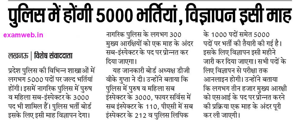 The Uttar Pradesh Police is going to make a fresh recruitment for the 5000 Sub Inspectors in the department very soon. The statement was released by the Board Chairperson DG VK Gupta, UP Police Recruitment Board. As per the official reports, the Recruitment Process shall start soon.