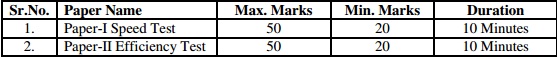 Computer Exam – Speed Test and Efficiency Test. The maximum marks for both the tests shall be 50 Marks each. The qualifying marks are 20 in each of the exams. For Syllabus related details read information below –